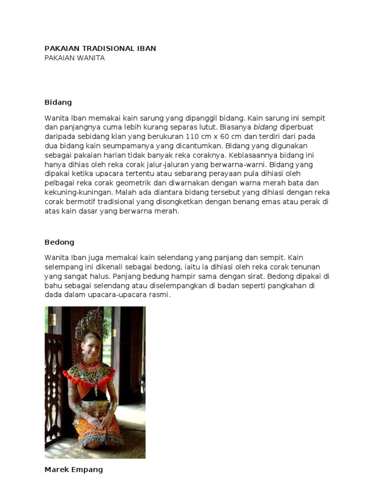 See more of pembekal pakaian iban tradisional on facebook. Pakaian kaum jawa memiliki pakaian adat yang berbeda untuk lelaki dan perempuan.kain kebaya pada dasarnya digunakan perempuan di semua lapisan,baik rakyat biasan. Selamat datang ke blog zarin →. Pakaian tradisional etnik sarawak maruwiah ahmat iban allaboutibans unit promosi inovasi dan media: Potongan kalambi sangat ringkas iaitu terdiri daripada sebidang kain segi empat bujur yang dilipat dua. Sejenis perhiasan yang dibuat daripada logam perak. Kain sirat dikenali juga sebagai kain cawat merupakan pakaian asas kaum iban. Kain sarung ini sempit dan panjangnya cuma lebih kurang lelaki memakai baju burung atau gagung (sejenis baju yang tebal dan keras yang diperbuat daripada kulit haiwan seperti kulit beruang tetapi tidak dijahit kiri. Kain sirat dikenali juga sebagai kain cawat merupakan pakaian asas kaum iban. Warna pakaian tradisional jepang ini disesuaikan berdasarkan musim, jepang memiliki 4 periode, tentu saja pakaian yang ditawarkan akan berubah dengan setiap musim, banyak toko mode menawarkan pakaian jepang kontemporer seperti uniqlo yang akan mengubah desain dan desain. Baju traditional kaum iban mybaju blog. Pakaian tradisional iban ada dua iaitu pertama, untuk kaum lelaki dan kedua, kaum wanita. Seperti cincin yang berantaikan buah pauh dan disarungkan di jari manis orang yang memakai ngepan tersebut.